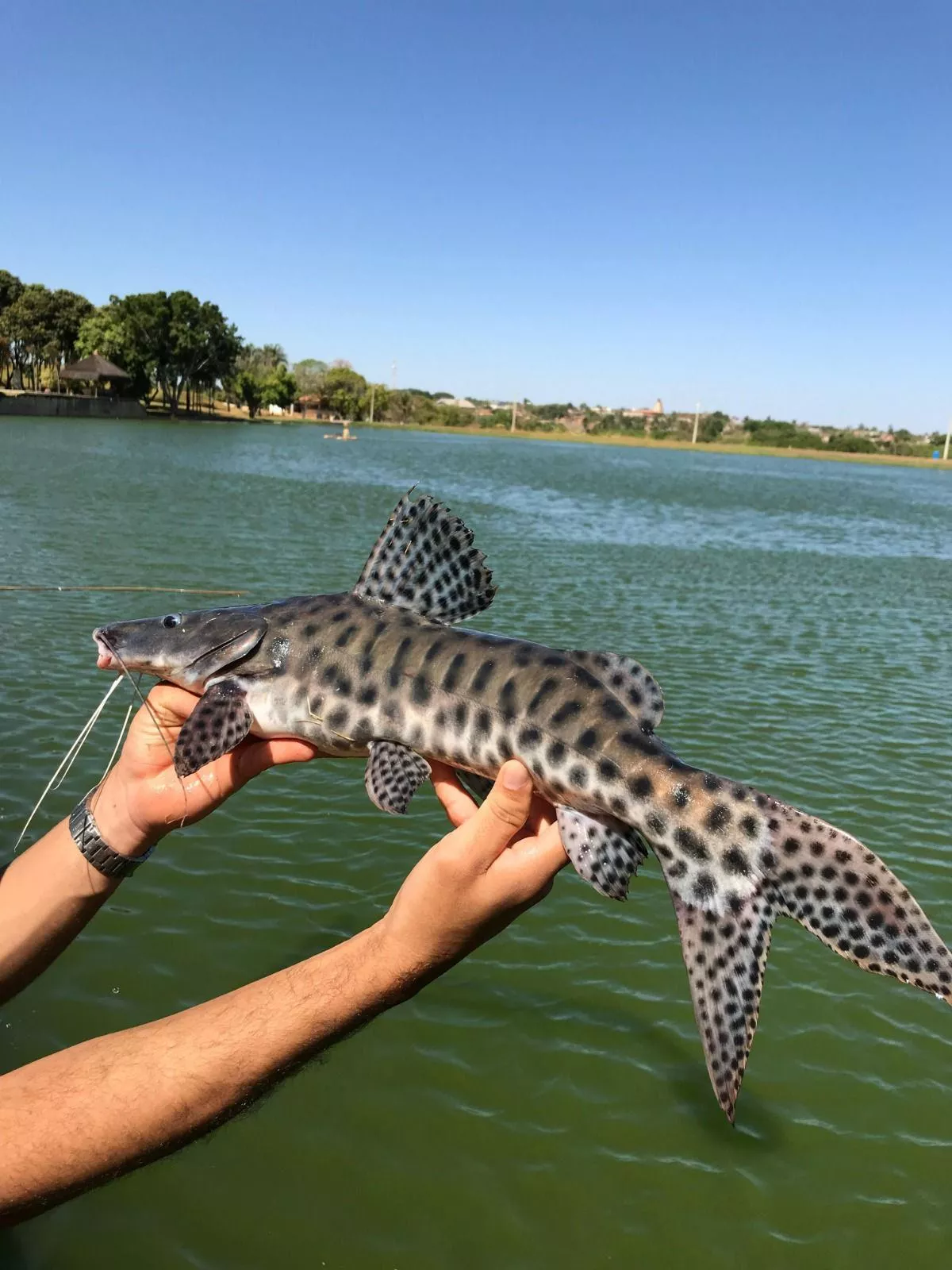 Esse é um Pintado, produzido em um açude, esse peixe você pode produzir solto no lago ou em gaiolas e tem muita saída pra frigoríficos por conta da sua carne saborosa e sem espinhos